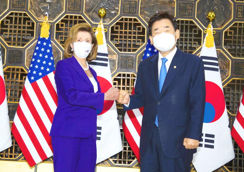 After infuriating China over her trip to Taiwan, Pelosi yesterday met South Korean political leaders in Seoul, but avoided making direct public comments on relations with Beijing and Taipei that could further increase regional tensions.
