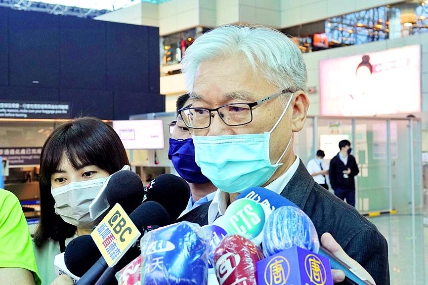 Delegation members include KMT Mainland Affairs Department head Lin Chu-chia (林祖嘉), deputy head Teng Tai-hsien (鄧岱賢) and Kao Su-po (高思博), director of the party’s main think tank, among others.