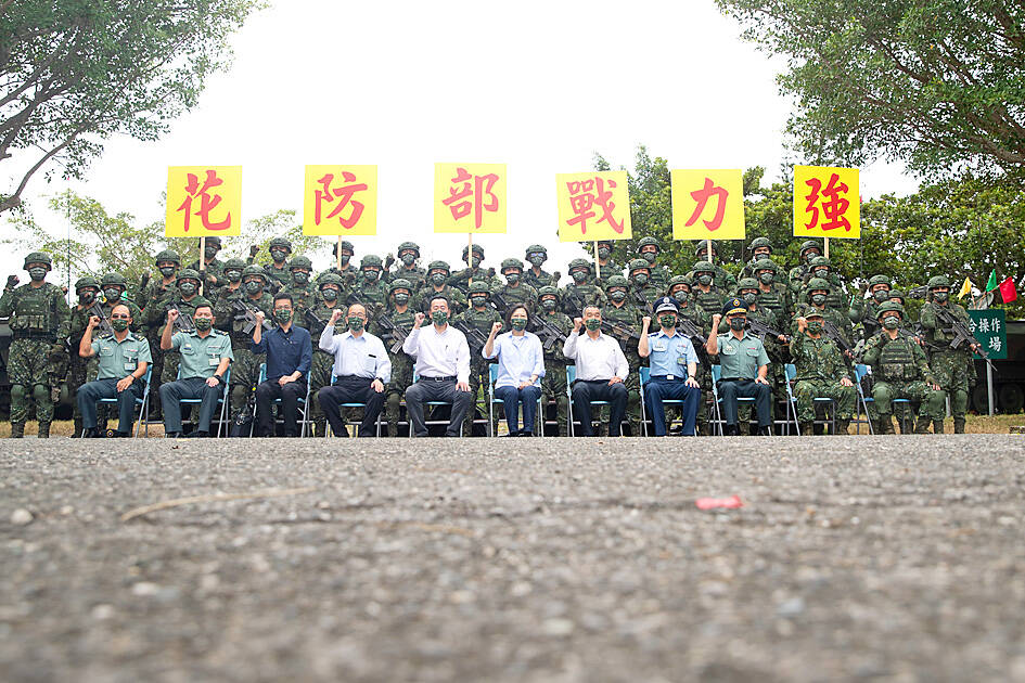 Tsai also inspected the “simulated combat situation gunnery training” program being trialed at the Huadong Defense Command’s Nanpu Base in Hualien, which the military plans to implement nationwide in January.