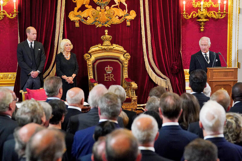 In Taipei, Presidential Office spokesman Xavier Chang (張惇涵) yesterday issued a statement congratulating Charles on his ascension to the throne.