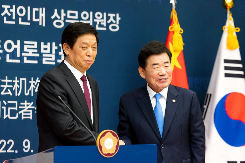 Li Zhanshu (栗戰書), third in the Chinese Communist Party hierarchy and one of Chinese President Xi Jinping’s (習近平) closest confidants, is the highest-level Chinese official to visit South Korea since his predecessor came here in 2015.