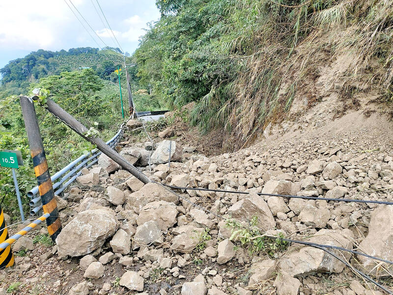 Nearly 400 travelers were trapped on Yuli’s Chikeshan (赤科山), as a road was damaged by a landslide triggered by the earthquake, local residents said.