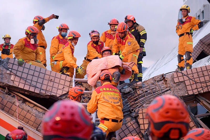 Rescuers in Yuli Township yesterday saved all four people trapped under rubble at the apartment building, and others rescued three people, who were crossing the nearby Kaoliao Bridge (高寮大橋) when it collapsed, the Hualien County Government said.