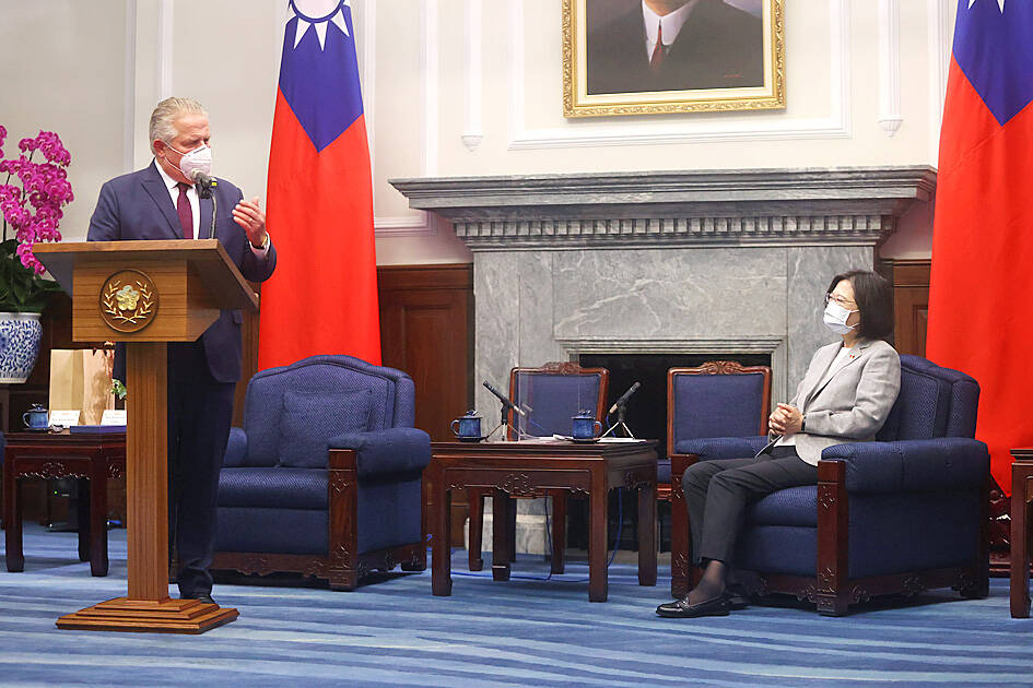 Tsai thanked Germany, which holds the G7’s rotating presidency this year, for overseeing the issuance of joint statements by G7 leaders and foreign ministers showing concern for peace and stability in the Taiwan Strait.