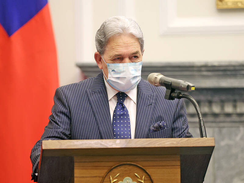 Former New Zealand deputy prime minister Winston Peters in Taipei yesterday called for cooperation between like-minded partners for a peaceful future.