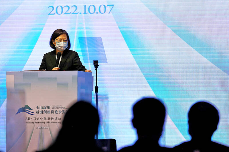 Taiwan is looking to play a “crucial” role in the development of the Indo-Pacific region in the post-COVID-19 era, President Tsai Ing-wen (蔡英文) said yesterday at the opening of the two-day Yushan Forum in Taipei.