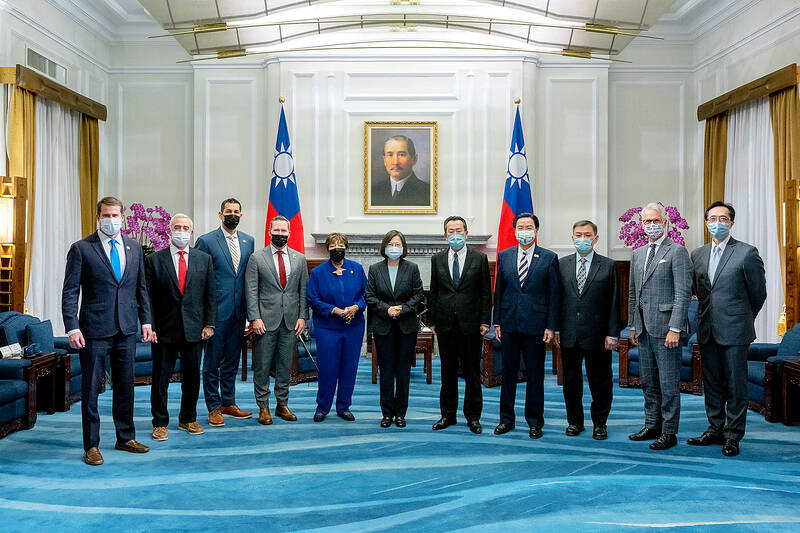 She also expressed hope that the visiting US lawmakers would continue to support Taiwan in the US Congress and back the signing of a double taxation avoidance agreement.