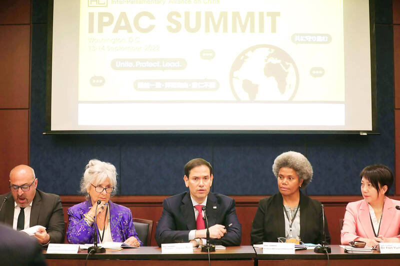 The Inter-Parliamentary Alliance on China (IPAC) yesterday urged democracies to support Taiwan, rearrange supply chains and impose sanctions on Chinese officials, a day before the opening of the 20th National Congress of the Chinese Communist Party (CCP).