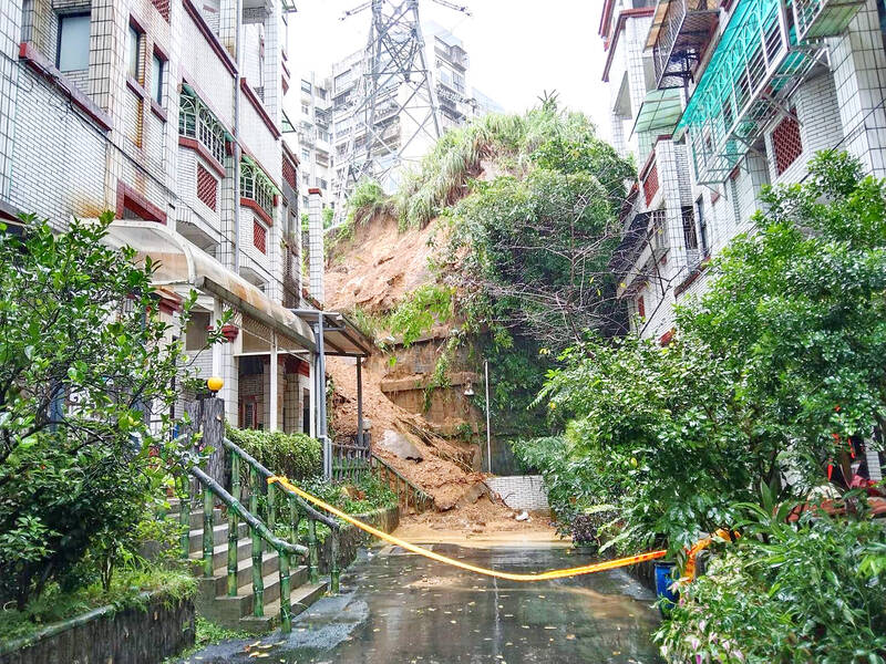 In New Taipei City, 70 people in a residential community in Sijhih District (汐止), where heavy rain on Sunday night triggered a mudslide, were all safe and waiting to be evacuated, officials said.