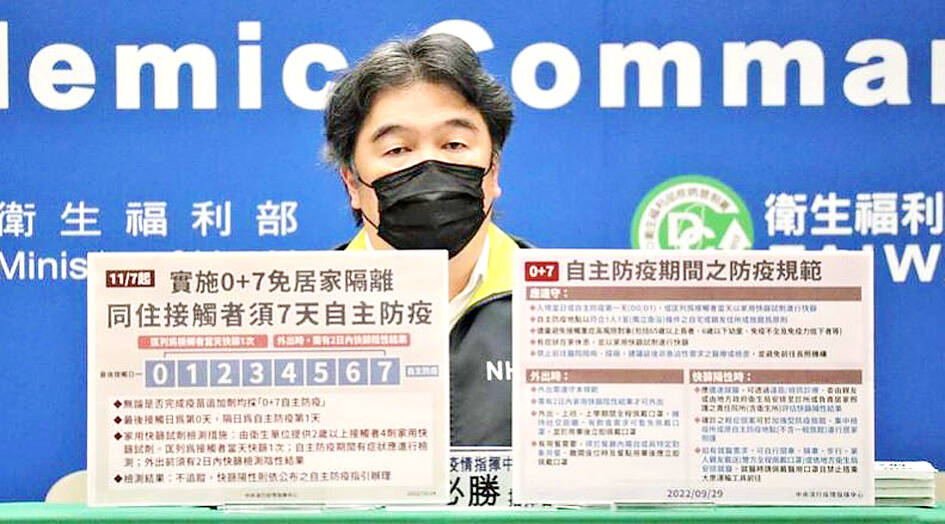 From Nov. 7, there would no longer be a three-dose or test requirement for those activities, said Deputy Minister of Health and Welfare Victor Wang (王必勝), who heads the center.
