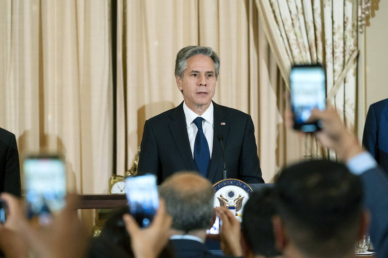 Blinken’s latest criticism, part of a broader war of words between Washington and Beijing, also came shortly after Beijing wrapped up its twice-a-decade Chinese Communist Party congress, which saw Chinese President Xi Jinping (習近平) consolidate his power.