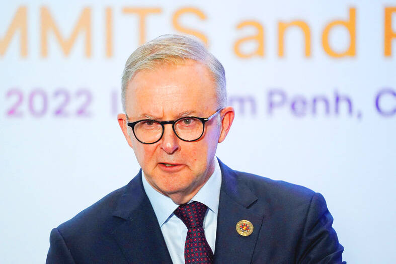 Australian Prime Minister Anthony Albanese yesterday hailed a “positive” meeting with Chinese Premier Li Keqiang (李克強) — the first in-person encounter between leaders of the two countries since 2019.