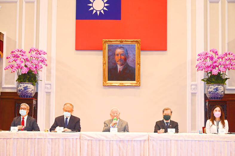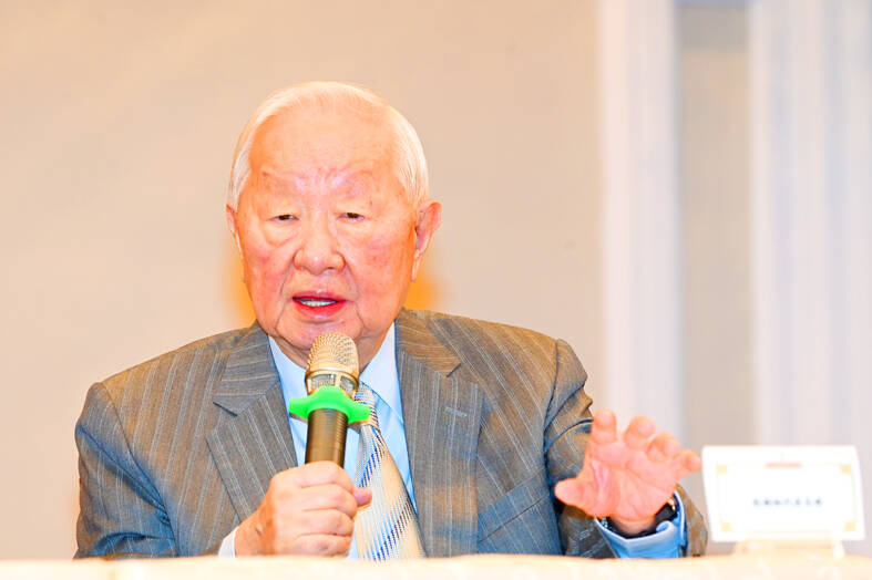 The 91-year-old entrepreneur, who has been appointed as Taiwan’s envoy to APEC six times, yesterday morning held a news conference at the Presidential Office Building to discuss his delegation’s accomplishments at this year’s APEC Economic Leaders’ Week in Bangkok, which ended on Saturday.
