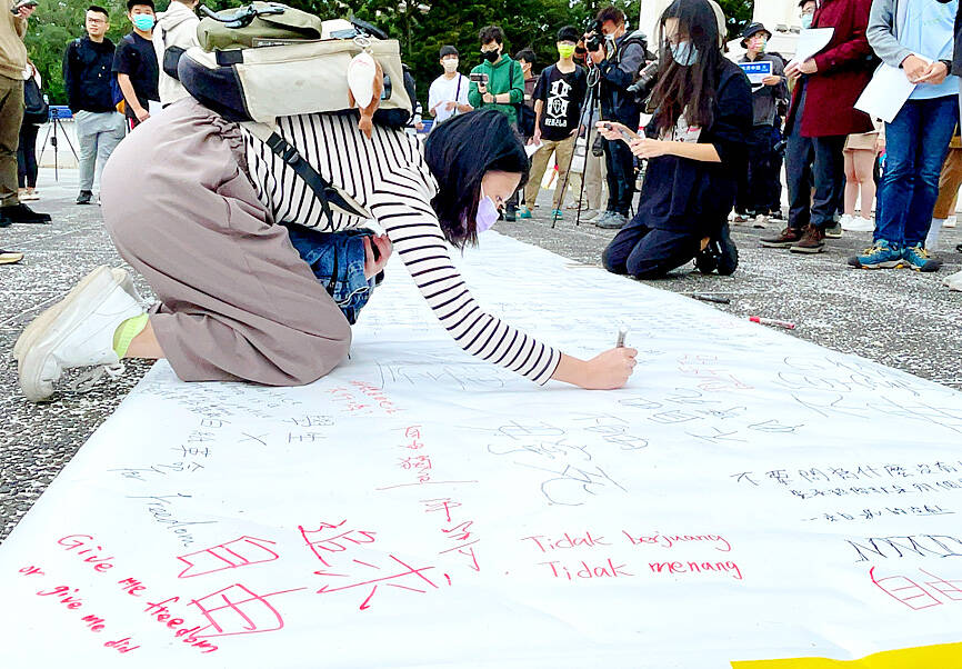 Some have called for democracy, freedom of speech and for Chinese President Xi Jinping (習近平) and the Chinese Communist Party (CCP) to step down.
