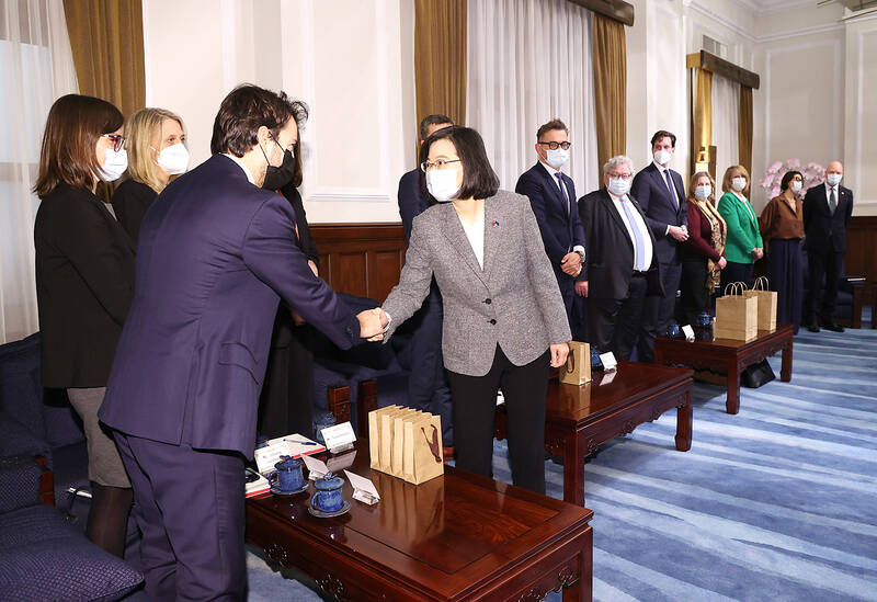 Asimakopoulou, a Greek politician who is vice chair of the parliament’s International Trade Committee, is part of a delegation that met with President Tsai Ing-wen (蔡英文) at the Presidential Office.