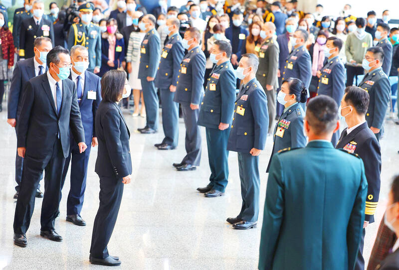 She made the call at a ceremony at the Ministry of National Defense headquarters to promote 28 senior military officers, including Taiwan’s first female two-star general.