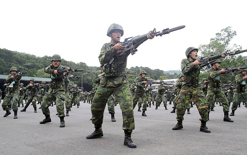 Under former president Ma Ying-jeou (馬英九) of the Chinese Nationalist Party (KMT), who was in office from 2008 to 2016, the government turned the nation’s military into a mainly volunteer force, with conscripts, serving in support roles, only required to undergo four months of military training since 2013.