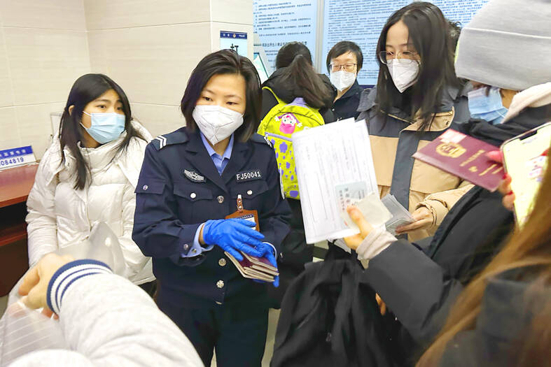 At an enlarged Cabinet meeting yesterday morning, Premier Su Tseng-chang (蘇貞昌) said that Taiwan generally has not allowed Chinese travelers into the nation since the pandemic began, but more than 30,000 people are expected to arrive from China during the Lunar New Year holiday.