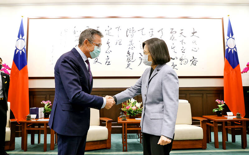 Speaking during a meeting with President Tsai Ing-wen (蔡英文) at the Presidential Office in Taipei, Rasmussen said he was “in Taiwan to show my strong support for your rights to decide the future of Taiwan yourselves.”