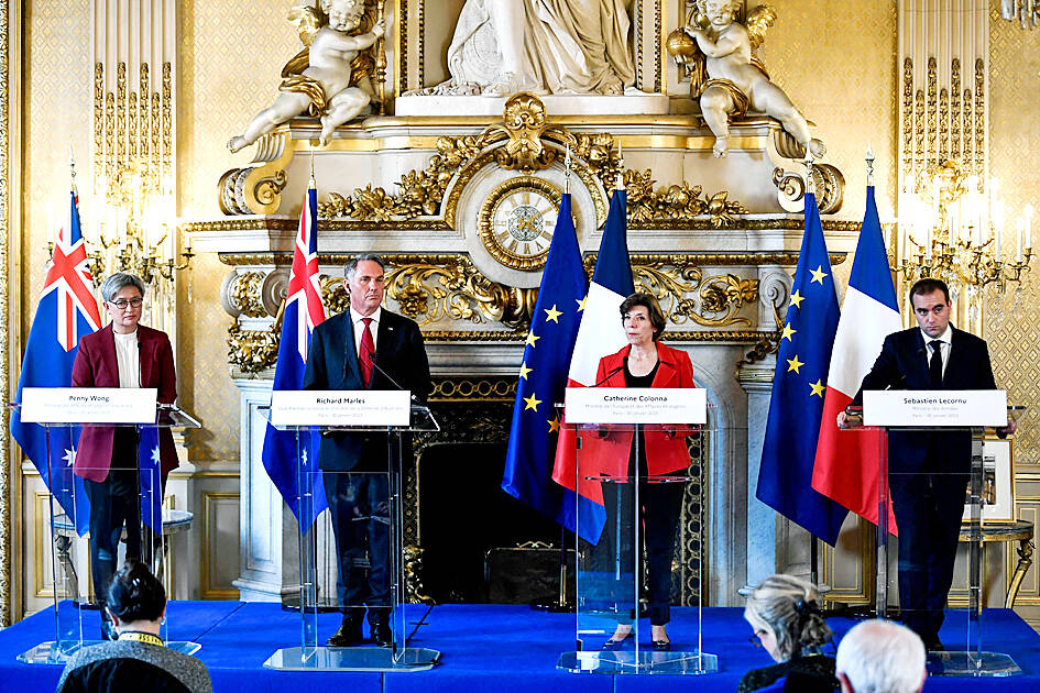 France and Australia on Monday pledged to deepen ties with Taiwan and reiterated their support for its participation in international organizations at this year’s Foreign and Defense Ministerial Consultations in Paris.