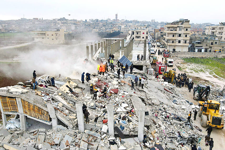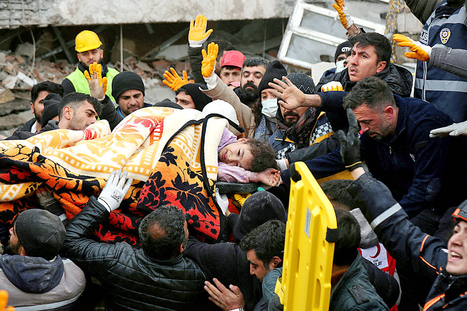 President Tsai Ing-wen (蔡英文) yesterday sent her sympathies to the people affected by a powerful earthquake that struck Turkey and Syria, with the government pledging to donate US$200,00 to rescue efforts and providing disaster relief assistance.