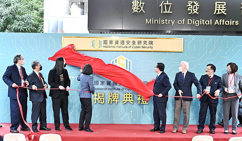 President Tsai Ing-wen (蔡英文), who also attended the ceremony, said the establishment of the NICS was part of the government’s efforts to tackle ever-evolving cybersecurity threats from external forces.