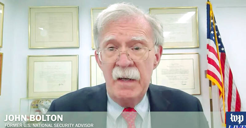 Former US national security adviser John Bolton on Friday reiterated a call for US naval visits to the Port of Kaohsiung, as he affirmed the Pentagon’s reported plan to send more troops to Taiwan.