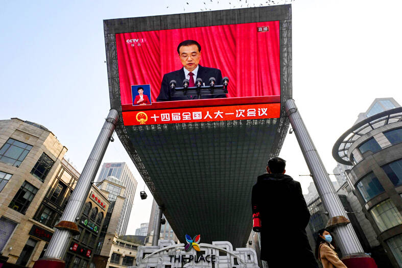 Outgoing Chinese Premier Li Keqiang (李克強) told congress delegates that “external attempts to suppress and contain China are escalating.”
