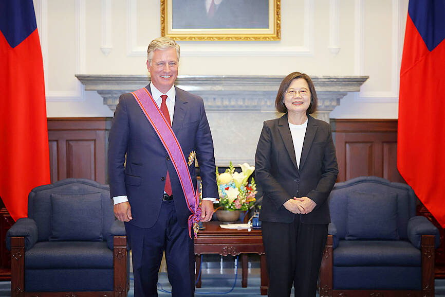 O’Brien, who served under former US president Donald Trump, made the remarks at the Presidential Office in Taipei, where President Tsai Ing-wen (蔡英文) conferred on him the Order of Brilliant Star.