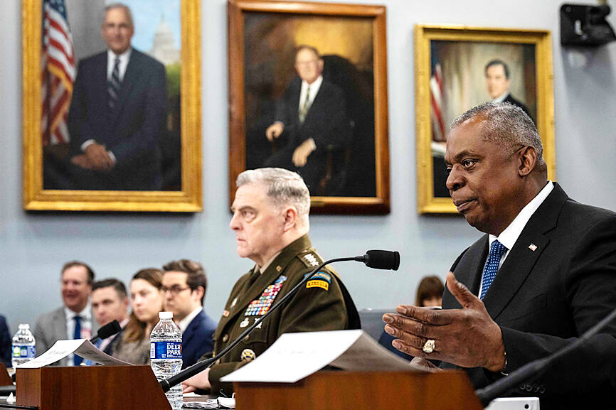Austin was responding to a remark by US Representative Ken Calvert, chairman of the US House of Representatives Defense Appropriations Subcommittee, after his visit to Taiwan last week that arms deliveries were moving at an “extremely slow pace.”