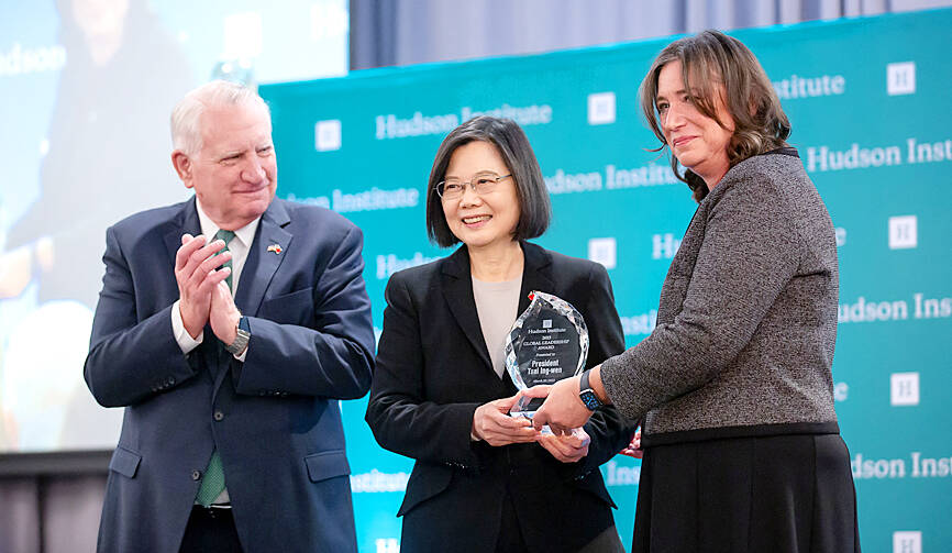President Tsai Ing-wen (蔡英文) on Thursday received the Hudson Institute’s Global Leadership Award for her work to deepen the nation’s ties with the US and her determination to maintain a free and open Indo-Pacific region.