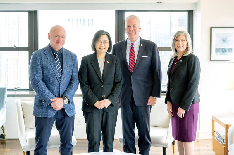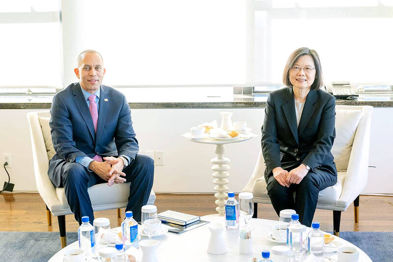 Tsai separately met with Hakeem Jeffries, the top Democrat in the House of Representatives, on Thursday last week and had breakfast with Republican US senators Dan Sullivan and Joni Ernst, and Democratic US Senator Mark Kelly before leaving New York the next day for Central America, Chang said.