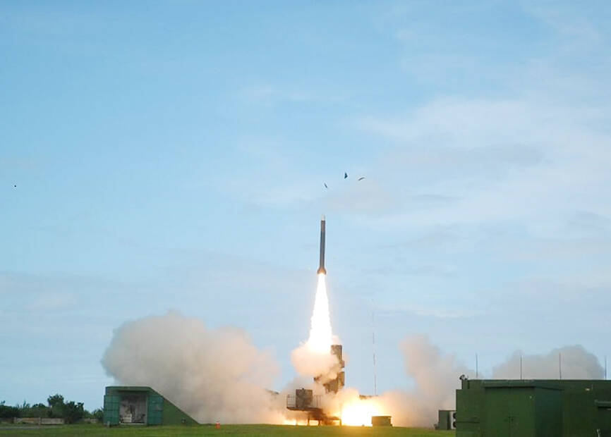 The maximum intercept height of Sky Bow III and Patriot III missiles — both of which are in service in Taiwan — is 40km.