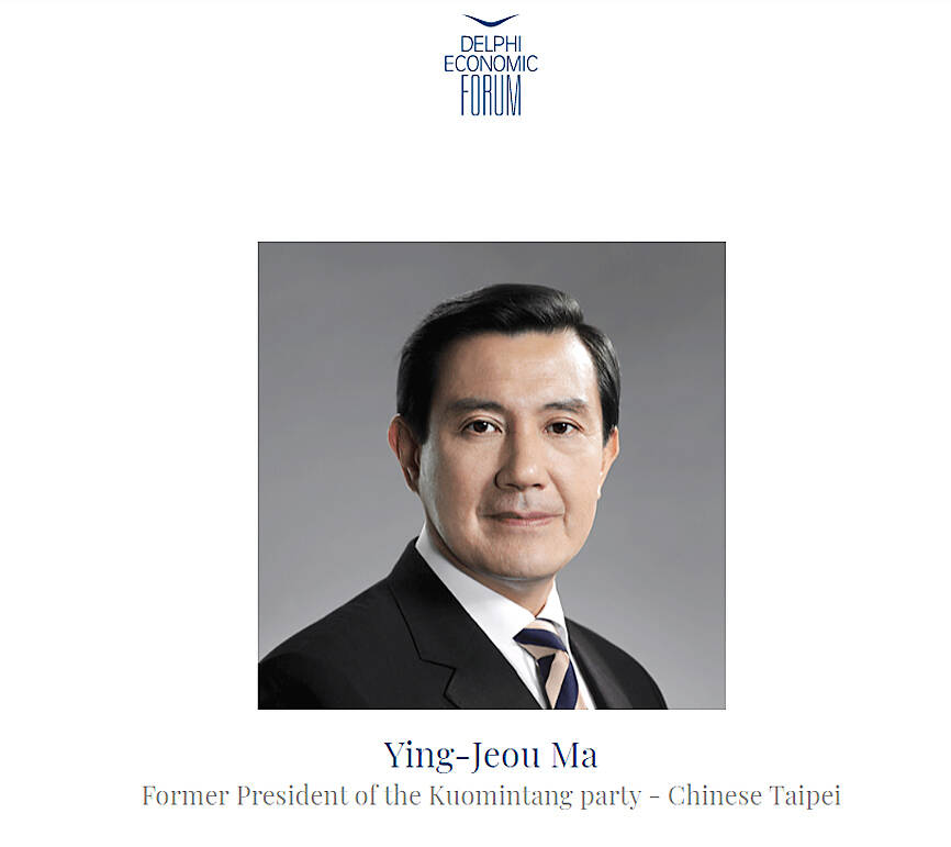 The ministry said it had sent its “strongest condemnation to the Delphi Economic Forum for arbitrarily changing the title of former Taiwan president Ma.”