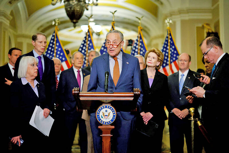 Launching the latest legislative drive in the Democratic-led Senate, US Senate Majority Leader Chuck Schumer framed the fight to rein in Chinese President Xi Jinping’s (習近平) Chinese Communist Party (CCP) as an epochal struggle.