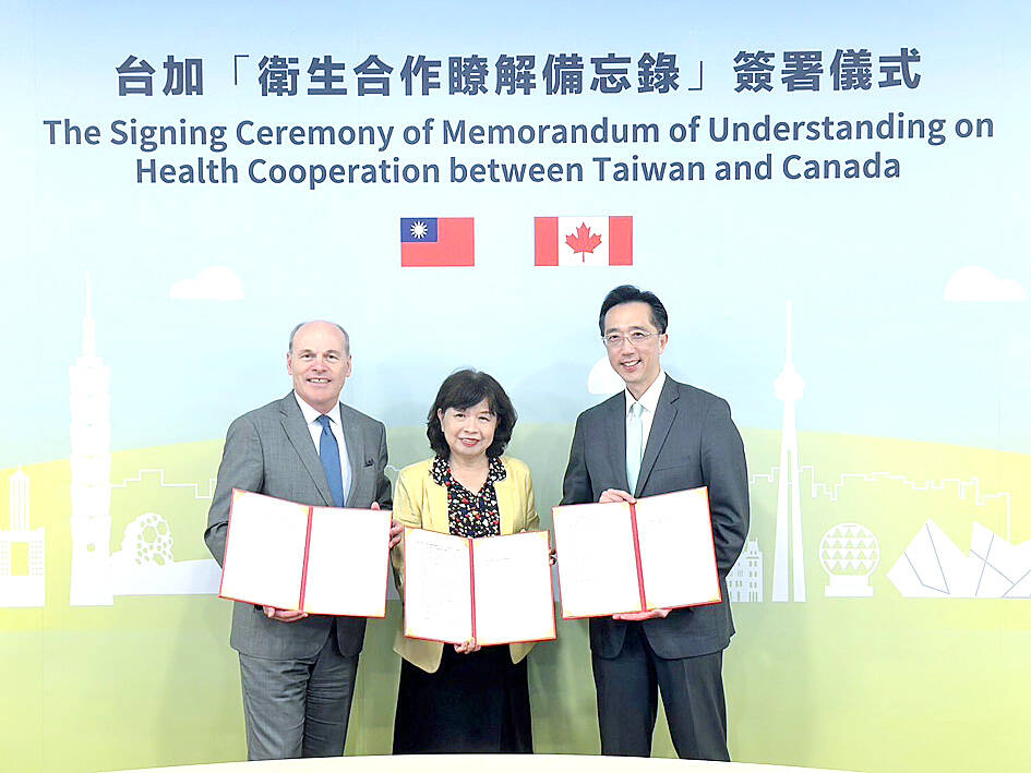 Taiwan and Canada signed a memorandum of understanding (MOU) to promote cooperation on health affairs and boost the efficiency of joint programs, the Ministry of Foreign Affairs said yesterday.