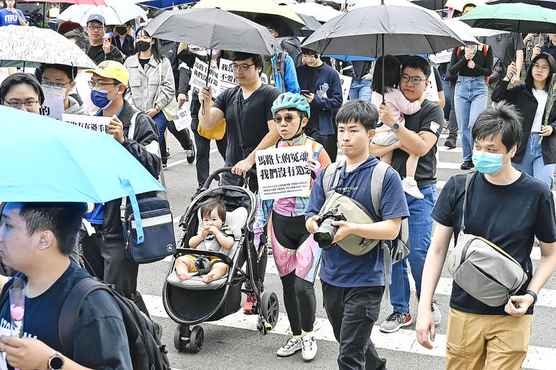 In Taipei, a woman with her one-year-old son in a stroller said she attended the event to mourn for the three-year-old girl who died in Tainan last week, and to express her frustration at using a baby stroller in the city.