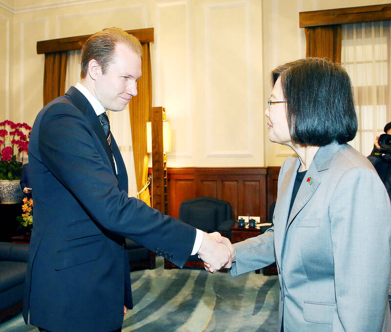 Taiwan’s exclusion from the World Health Assembly (WHA) and other international organizations is “unacceptable,” visiting Swedish lawmaker Markus Wiechel said during a meeting with President Tsai Ing-wen (蔡英文) yesterday.