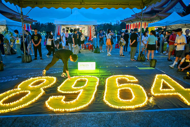 “Facing the historical pain, we must realize that freedom and human rights are the progressive values that both sides of the [Taiwan] Strait should pursue, and supporting June Fourth is a practical display of the ROC pursuing freedom and democracy,” New Taipei City Mayor Hou You-yi (侯友宜), the KMT’s presidential candidate, said in a statement.
