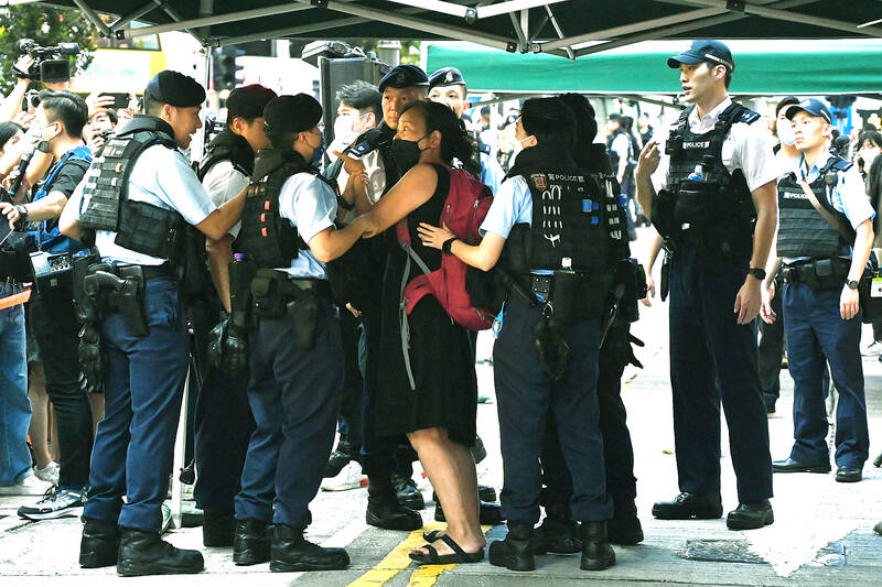 Chan Po-ying (陳寶瑩), a veteran activist and head of the League of Social Democrats, was in Hong Kong’s Causeway Bay shopping district — an area that for years was the site of commemorations of the bloody June 4, 1989, crackdown in China. Holding a small LED candle — a common sight during the annual vigil — and two flowers, Chan was immediately seized by police and hauled into a van.