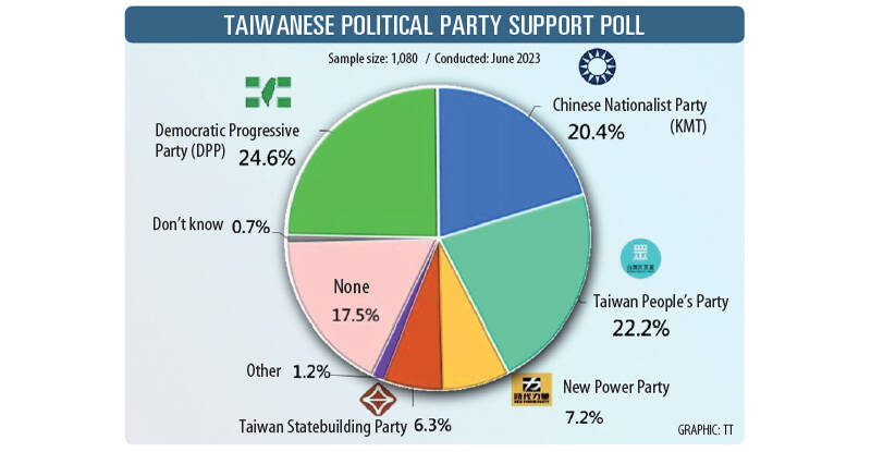 The TPP, established in 2019, has an approval rating of 22.2 percent, compared with 20.4 percent support for the KMT, the poll showed.