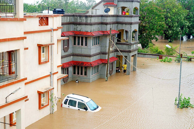 At least two people died in India’s western state of Gujarat after being swept away by flood waters just before the cyclone hit.