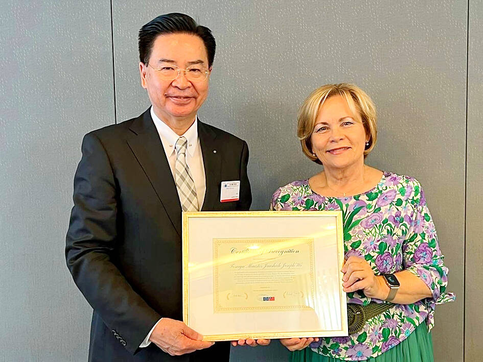 The European Parliament-Taiwan Friendship Group and the Belgium-Taiwan Friendship Group each issued a certificate of appreciation and a joint letter of appreciation to Wu in recognition of his contributions to deepening the partnership between Taiwan, and the EU and Belgium, it said.