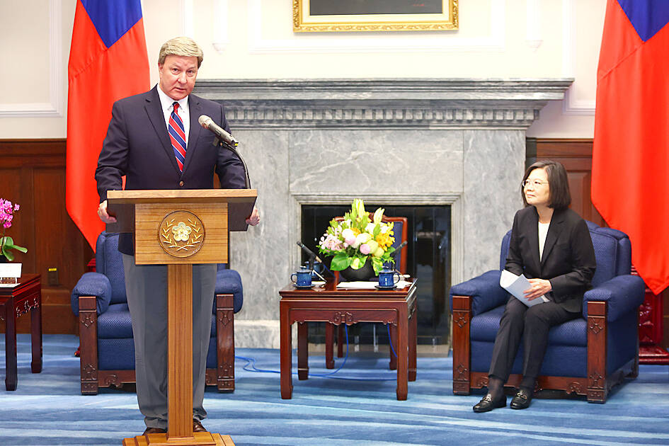 “We thank the US Congress for consistently showing bipartisan concern for Taiwan’s security and its show of support [for the nation] through concrete actions,” Tsai told the delegation at the Presidential Office in Taipei.