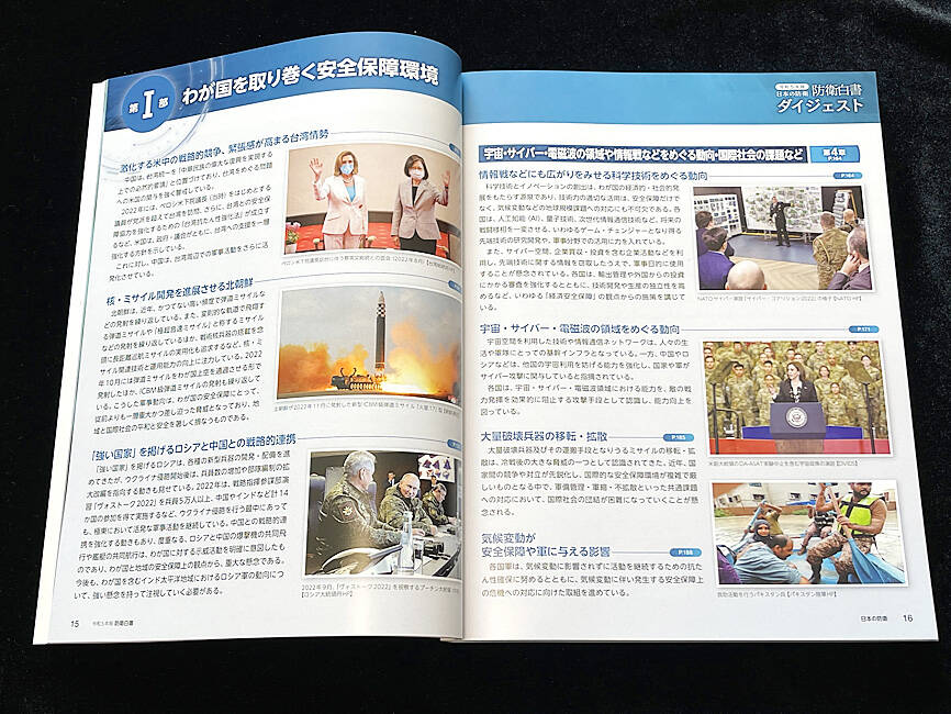 The white paper, which was approved in a Cabinet meeting and released yesterday, was based on the National Security Strategy, the National Defense Strategy and the Defense Buildup Program that were adopted by the Japanese government in December last year.