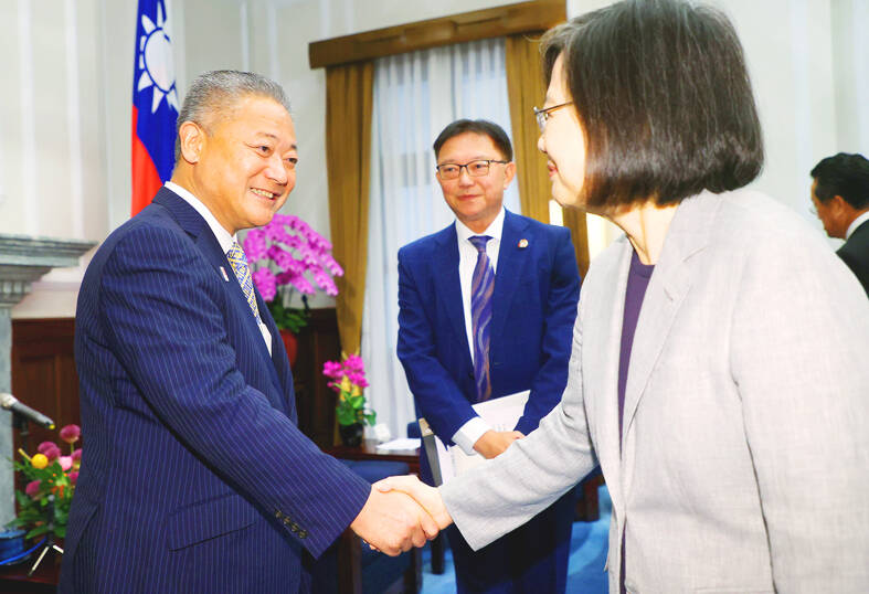 Earlier the same day, the group met with President Tsai Ing-wen (蔡英文), who urged the Japanese lawmakers to support Taiwan’s bid to join the Comprehensive and Progressive Agreement for Trans-Pacific Partnership.