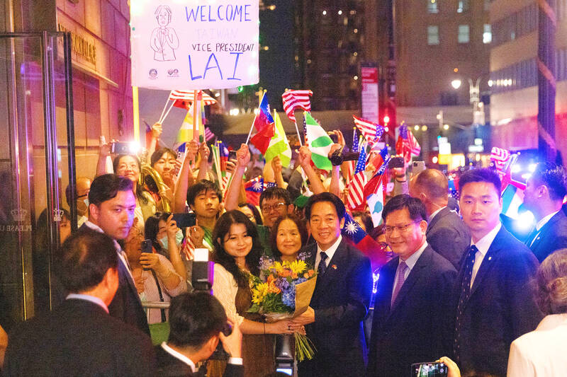 Vice President William Lai (賴清德) was welcomed by overseas Taiwanese upon his arrival in New York on Saturday evening for a stopover en route to Paraguay.