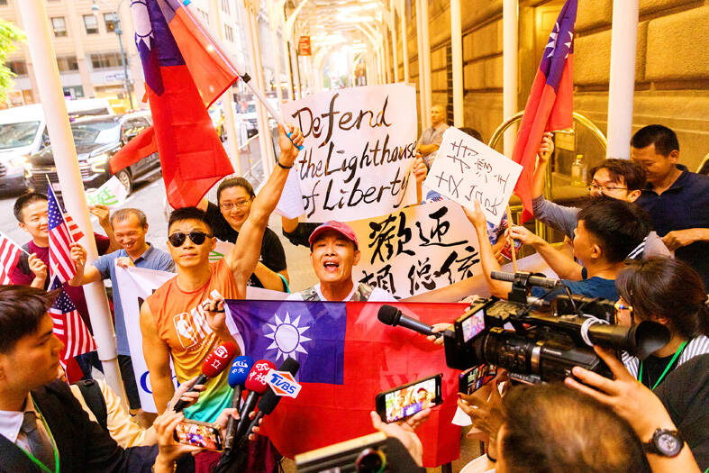 After arriving by motorcade at the Lotte New York Palace hotel on Madison Avenue at about 10pm, Lai briefly greeted and shook hands with supporters waving Republic of China flags before making his way into the hotel.
