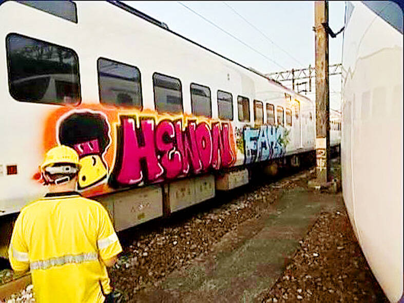 The Railway Police Bureau’s branch director for New Taipei City’s Shulin District (樹林), Su Chien-wei (蘇建偉), said that TRA workers discovered that the train had been vandalized at 4:50am yesterday and reported the incident to the police.