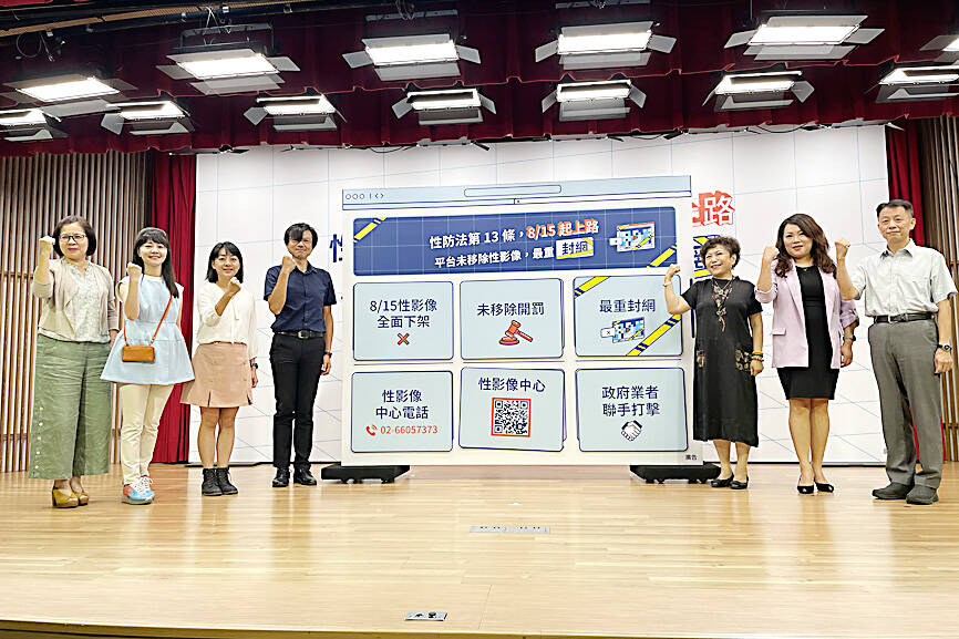 Liu Yu-chun (劉昱均), manager of the ministry’s nonconsensual intimate images response center, said so far the three online platforms that removed the images the fastest were Facebook, Instagram and YouTube, and that they were able to remove cases involving adults in 72 hours and cases involving children in 24 hours.